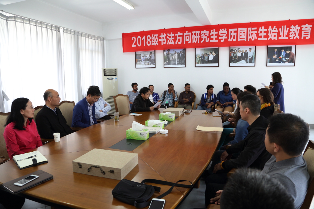 5月9日中午,兰亭书法艺术学院2018级书法专业国际研究生新生与导师见面会于学院103会议室顺利举行。纪委办、研究生处、外事处、兰亭书法艺术学院负责人,研究生导师及8名国际研究生参加活动。