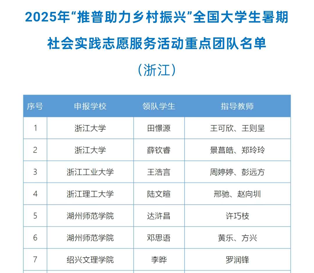 近日,在教育部语言文字应用管理司、共青团中央青年发展部联合开展的2025年“推普助力乡村振兴”全国大学生暑期社会实践志愿服务活动中,我校教育与心理学院“山海同声”实践团成功入选重点团队,“山花守望”实践团成功入选参与协同团队。