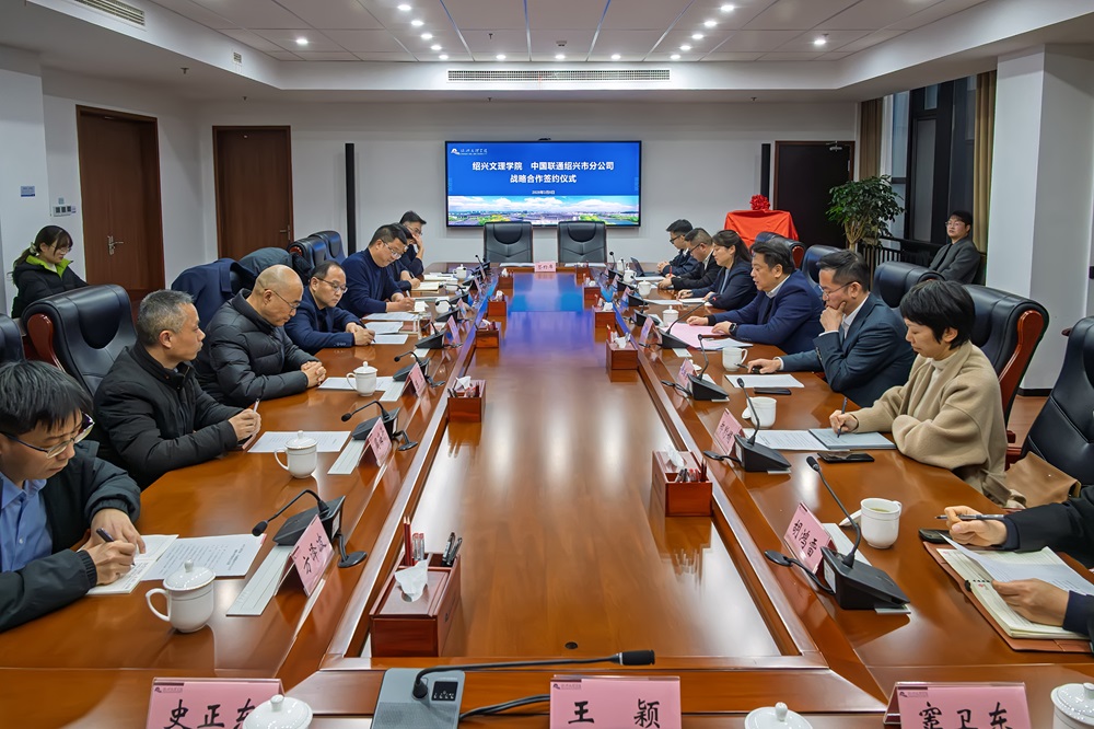 中国联通浙江省分公司、绍兴市分公司相关负责人,学校办公室、科学技术处、计财处、地方合作处、信息技术中心及数理信息学院主要负责人等参加签约仪式。
