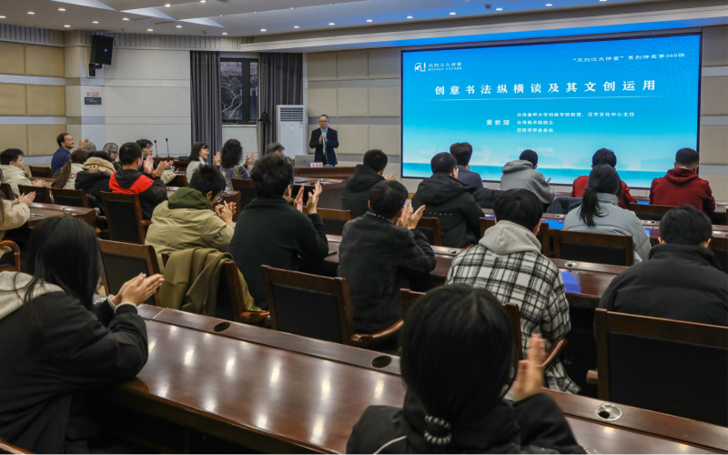 1月14日下午,风则江大讲堂第369讲“创意书法纵横谈及其文创运用”专题讲座在图书馆一楼报告厅举行,台湾逢甲大学创能学院教授、汉字文化中心主任萧世琼作学术报告,本次讲座由港澳台事务办公室主任令狐文生主持。