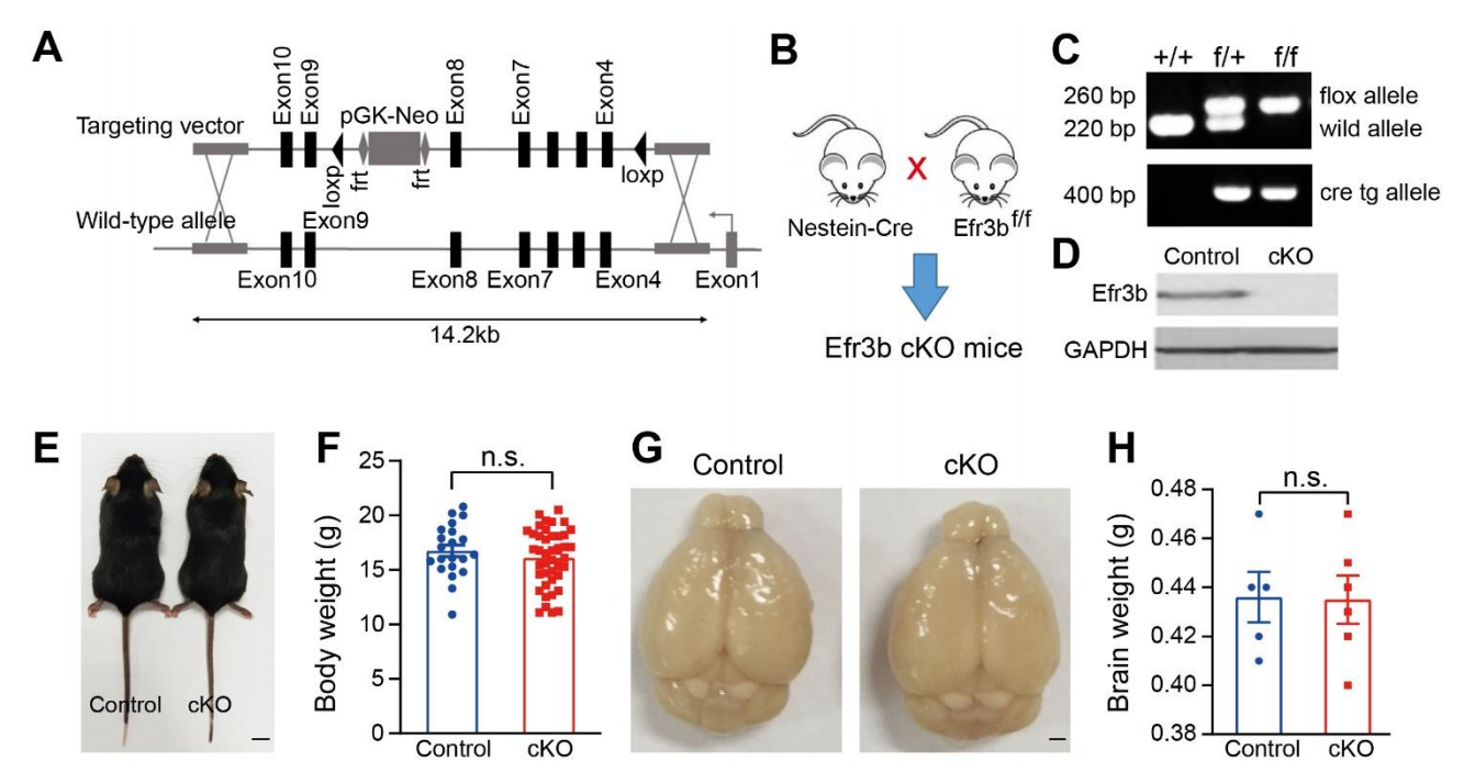 获取在神经细胞中敲除Efr3b的条件性敲除(cKO)小鼠
