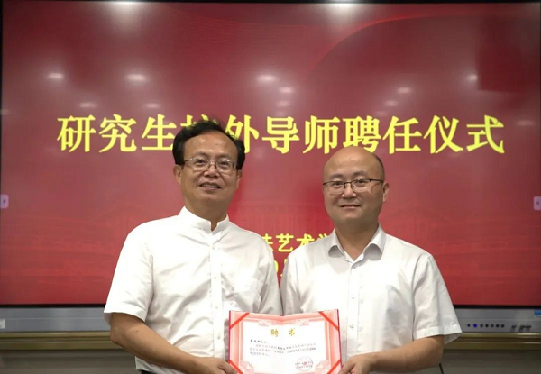 讲座开始前,学院举行了研究生校外导师聘任仪式,孙仕龙为黄建新授予聘书。