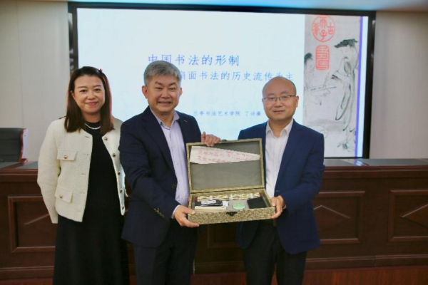 11月14日上午,新加坡教育部课程规划与发展司助理司长吴世伟带领“新加坡中学学生团”一行来兰亭书法艺术学院参观交流。兰亭书法艺术学院党委书记孙仕龙、党委副书记李湛,校国际交流合作处相关负责人等参加本次活动。