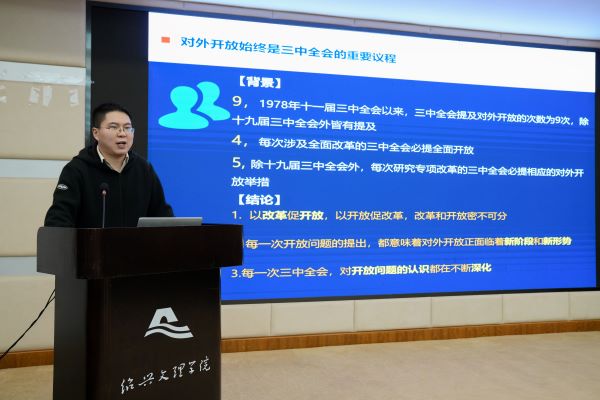 启动仪式后,绍兴市委党校沈敏奇博士做《完善高水平对外开放体制机制——党的二十届三中全会精神解读》专题辅导报告。